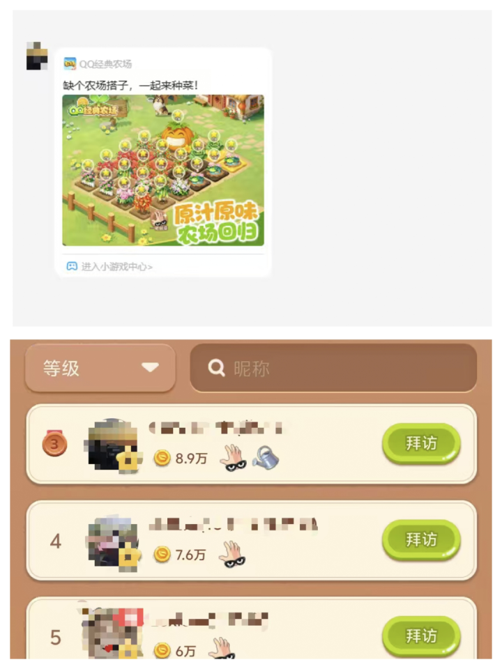 笔者QQ上许久不联系的老友也给我发来了《QQ经典农场》的分享链接,打开一看,很多许久不联系的同学朋友已经开始在农场种菜偷菜了。