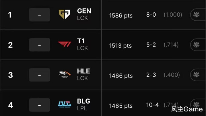 先锋赛开赛在即,拳头在近日,更新了全球队伍战力排行榜,GEN作为目前全球最强战队,毫无悬念登顶榜首,排在第二和第三的,都没打进先锋赛,他们分别是T1和HLE,老李的队伍排第二,勉强可以接受,但10进9被淘汰的HLE,排在第三,就真有点招笑了,拳头的榜单是真野鸡。